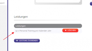 -> automatisch errechnet dir OptiOffice, dass der Kunde 52x Personal Training nutzen darf.